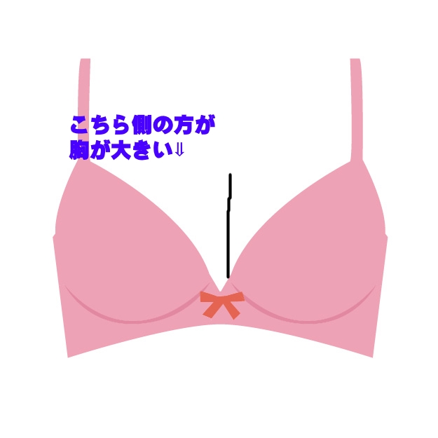 向かって左側のほうが大きいと、右側に谷間が